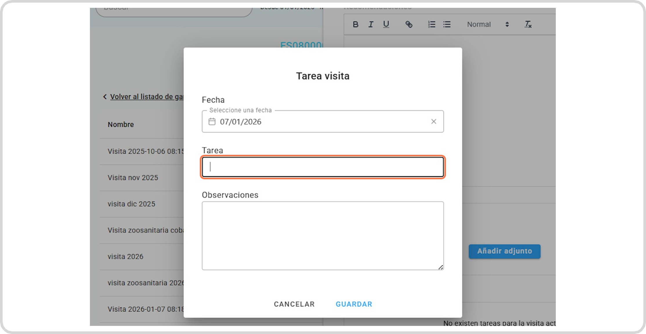 Y esa recomendación tendrá una tarea, cuya periodicidad que tiene el ganadero para realizarlo es hasta la próxima visita zoosanitaria que se realice.