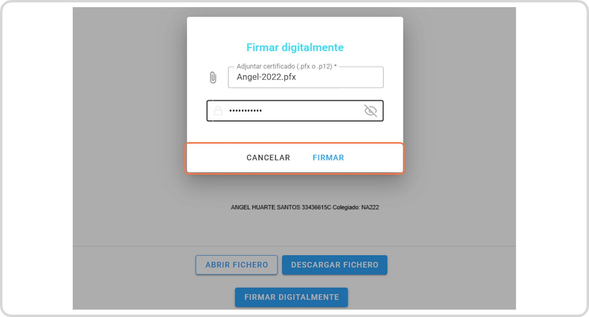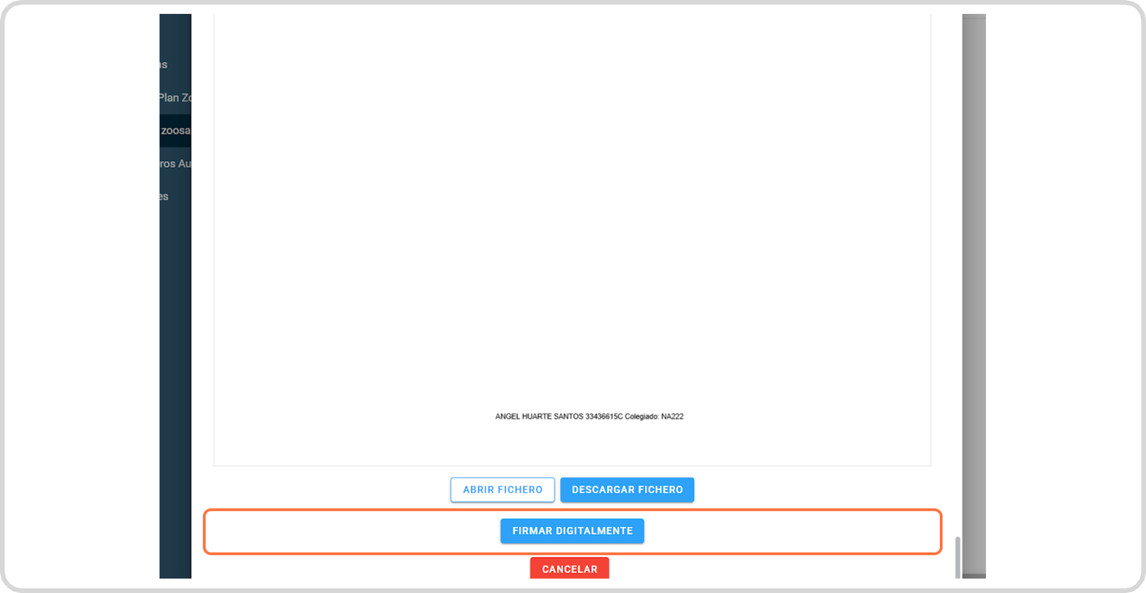 Una vez haya firmado el ganadero ya podrás firmar como veterinario de forma digital con tu certificado de firma (el mismo con el que firmas las recetas).