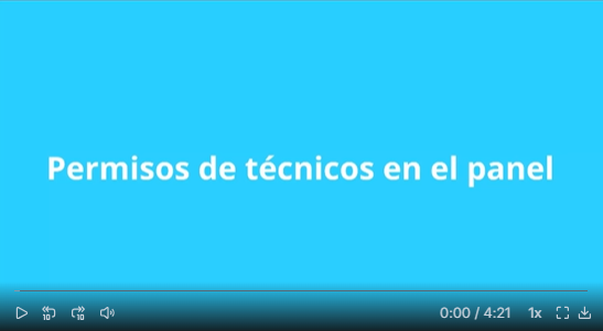 Si accedes como entidad, estos son los técnicos que puedes dar de alta junto con las funciones que pueden realizar en PSI364: